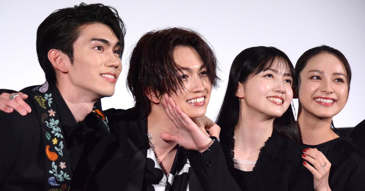 平祐奈x久保史緒里x綱啓永x樋口幸平の仲良しショット!映画『ネムルバカ』完成披露上映舞台あいさつ