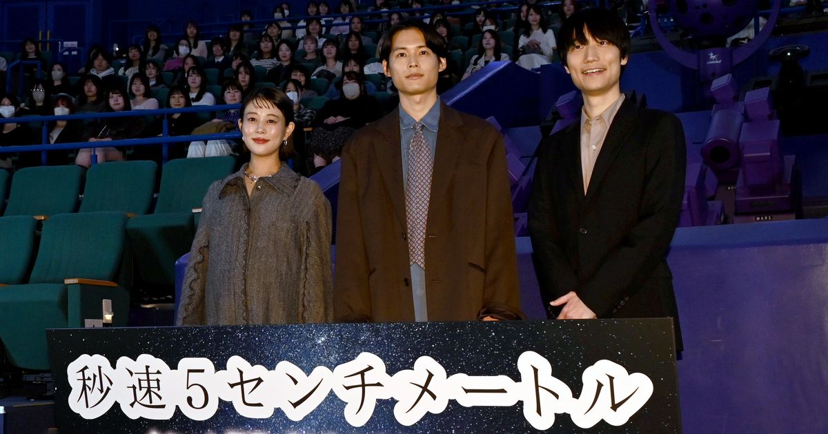 映画『秒速5センチメートル』の大ヒット御礼プラネタリウムイベントが21日、多摩六都科学館で行われ、松村北斗(SixTONES)、高畑充希、奥山由之監督が出席した。