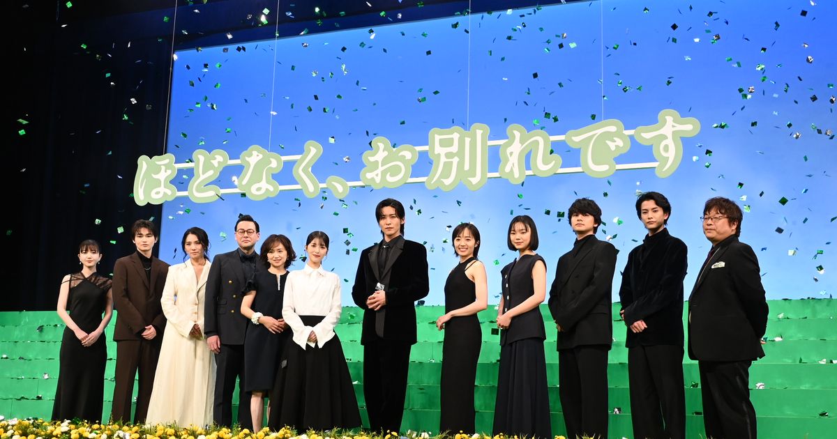 映画『ほどなく、お別れです』(2月6日全国公開)の完成披露舞台あいさつが13日に豊洲PITで行われ、浜辺美波、目黒蓮、森田望智、古川琴音、北村匠海、渡邊圭祐、野波麻帆、西垣匠、久保史緒里、鈴木浩介、永作博美、三木孝浩監督が出席した。