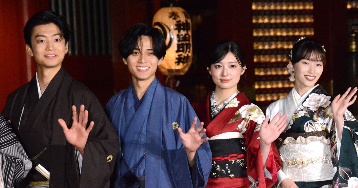 16日、東京・神田明神で行われた映画『鬼の花嫁』(3月27日公開)の大ヒット祈願イベントにダブル主演を務める永瀬廉吉川愛、共演の伊藤健太郎片岡凜池田千尋監督が登壇した。