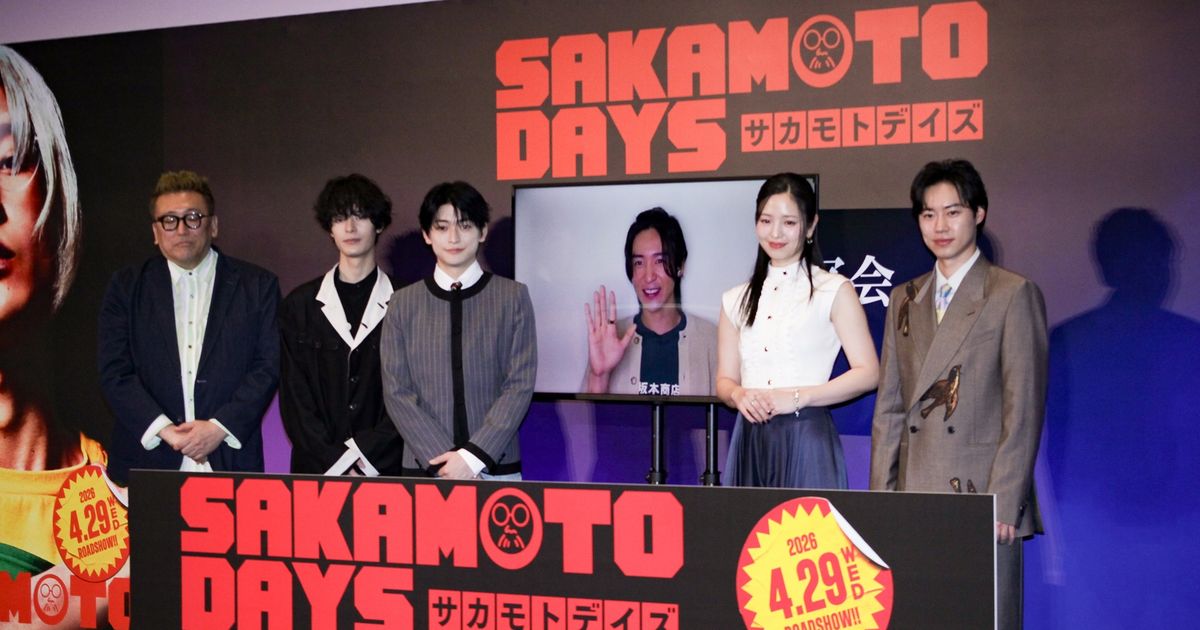 22日、映画『SAKAMOTO DAYS』(4月29日公開)の完成披露が都内で行われ、カナダで新作を撮影中の目黒蓮がリモートで舞台あいさつに参加。高橋文哉、横田真悠、戸塚純貴、塩野瑛久、福田雄一監督も登壇した。