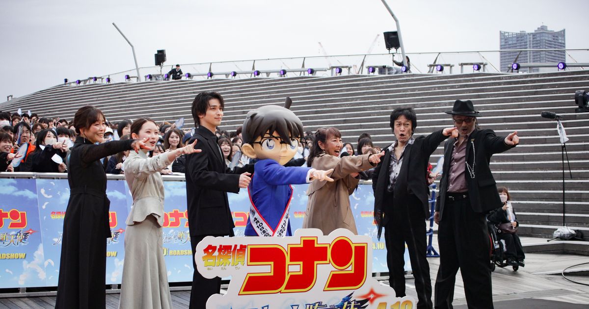 映画『名探偵コナン ハイウェイの堕天使(だてんし)』(4月10日公開)のファンミーティングイベントが4日、横浜港大さん橋国際客船ターミナル(横浜市中区)で行われ、高山みなみ(江戸川コナン役)、小山力也(毛利小五郎役)、大塚明夫(横溝重悟役)、日高のり子(世良真純役※高=はしごだか)、横浜流星(大前一暁役)、畑芽育(舘沖みなと役)が登壇した。