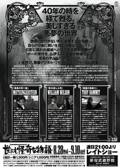 世にも怪奇な物語 (1967):フォトギャラリー 2010年8月28日公開 121分 作品情報 関連記事 画像 チラシ - (C) 1967-TF1 INTERNATIONAL - PRODUZIONI EUROPEE ASSOCIATES S.A.S.縦スクロールで次の画像 ADVERTISEMENT ポスター - (C) 1967-TF1 INTERNATIONAL - PRODUZIONI EUROPEE ASSOCIATES S.A.S. ADVERTISEMENT