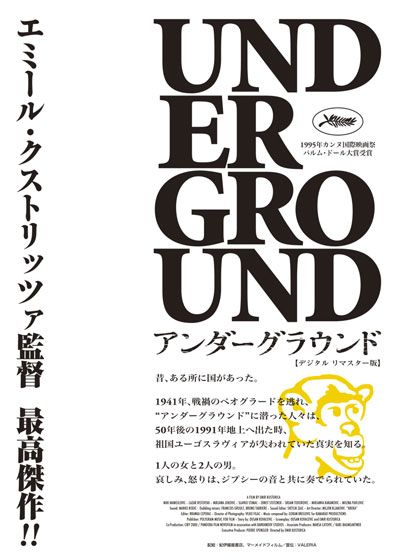 アンダーグラウンド (1995):フォトギャラリー 2011年9月24日公開 171分 作品情報 関連記事 予告編・動画 画像 ポスター - (C) CIBY2000-PANDORA FILM-MOVO FILM縦スクロールで次の画像 ADVERTISEMENT チラシ - (C) CIBY2000-PANDORA FILM-MOVO FILM 縦スクロールで次の画像 ADVERTISEMENT チラシ - (C) CIBY2000-PANDORA FILM-MOVO FILM ADVERTISEMENT
