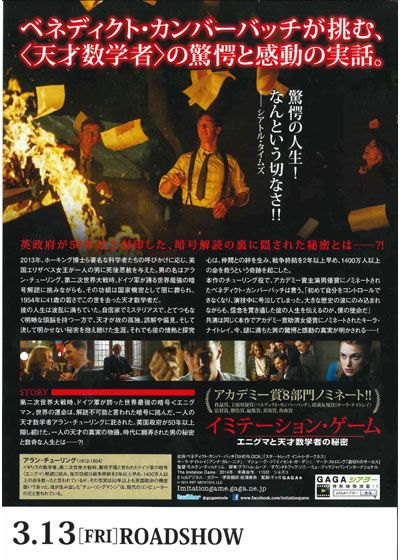 イミテーション・ゲーム/エニグマと天才数学者の秘密 (2014):フォトギャラリー 2015年3月13日公開 115分 作品情報 映画短評 関連記事 予告編・動画 画像 チラシ - (C) 2014 BBP IMITATION, LLC縦スクロールで次の画像 ADVERTISEMENT ポスター - (C) 2014 BBP IMITATION, LLC 縦スクロールで次の画像 ADVERTISEMENT チラシ - (C) 2014 BBP IMITATION, LLC 縦スクロールで次の画像 ADVERTISEMENT The Weinstein Company / Photofest / ゲッティ イメージズ 縦スクロールで次の画像 ADVERTISEMENT The Weinstein Company / Photofest / ゲッティ イメージズ 縦スクロールで次の画像 ADVERTISEMENT The Weinstein Company / Photofest / ゲッティ イメージズ 縦スクロールで次の画像 ADVERTISEMENT The Weinstein Company / Photofest / ゲッティ イメージズ 縦スクロールで次の画像 ADVERTISEMENT The Weinstein Company / Photofest / ゲッティ イメージズ ADVERTISEMENT