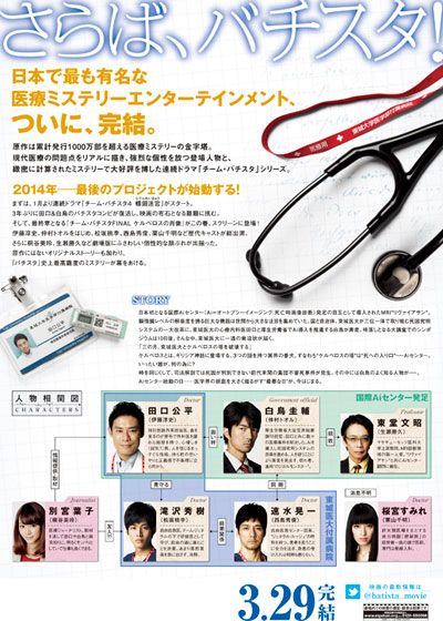 チーム・バチスタFINAL ケルベロスの肖像 (2014):フォトギャラリー 2014年3月29日公開 127分 作品情報 関連記事 予告編・動画 画像 チラシ - (C) 2014「チーム・バチスタFINAL ケルベロスの肖像」製作委員会縦スクロールで次の画像 ADVERTISEMENT ポスター - (C) 2014「チーム・バチスタFINAL ケルベロスの肖像」製作委員会 縦スクロールで次の画像 ADVERTISEMENT チラシ - (C) 2014「チーム・バチスタFINAL ケルベロスの肖像」製作委員会 ADVERTISEMENT