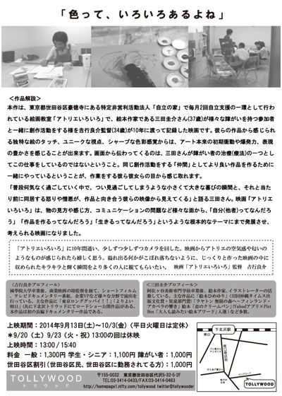 アトリエいろいろ (2014):フォトギャラリー 2014年9月13日公開 135分 作品情報 画像 チラシ縦スクロールで次の画像 ADVERTISEMENT ポスター 縦スクロールで次の画像 ADVERTISEMENT チラシ ADVERTISEMENT