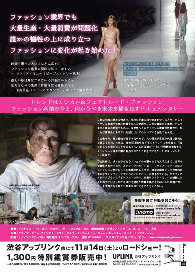 ザ・トゥルー・コスト ~ファストファッション 真の代償~ (2015):フォトギャラリー 2015年11月14日公開 93分 作品情報 予告編・動画 画像 チラシ - (C) TRUECOSTMOVIE縦スクロールで次の画像 ADVERTISEMENT ポスター - (C) TRUECOSTMOVIE 縦スクロールで次の画像 ADVERTISEMENT チラシ - (C) TRUECOSTMOVIE ADVERTISEMENT
