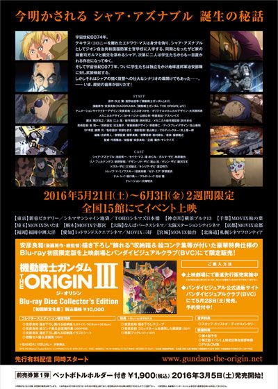 機動戦士ガンダム THE ORIGIN III 暁の蜂起 (2016):フォトギャラリー 2016年5月21日公開 60分 作品情報 関連記事 画像 チラシ - (C) 創通・サンライズ縦スクロールで次の画像 ADVERTISEMENT ポスター - (C) 創通・サンライズ 縦スクロールで次の画像 ADVERTISEMENT チラシ - (C) 創通・サンライズ ADVERTISEMENT