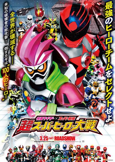 仮面ライダー×スーパー戦隊 超スーパーヒーロー大戦 (2017):フォトギャラリー 2017年3月25日公開 94分 作品情報 関連記事 予告編・動画 画像 ポスター - (C) 「超スーパーヒーロー大戦」製作委員会 (C) 石森プロ・テレビ朝日・ADK・東映AG・東映縦スクロールで次の画像 ADVERTISEMENT チラシ - (C) 「超スーパーヒーロー大戦」製作委員会 (C) 石森プロ・テレビ朝日・ADK・東映AG・東映 縦スクロールで次の画像 ADVERTISEMENT チラシ - (C) 「超スーパーヒーロー大戦」製作委員会 (C) 石森プロ・テレビ朝日・ADK・東映AG・東映 ADVERTISEMENT