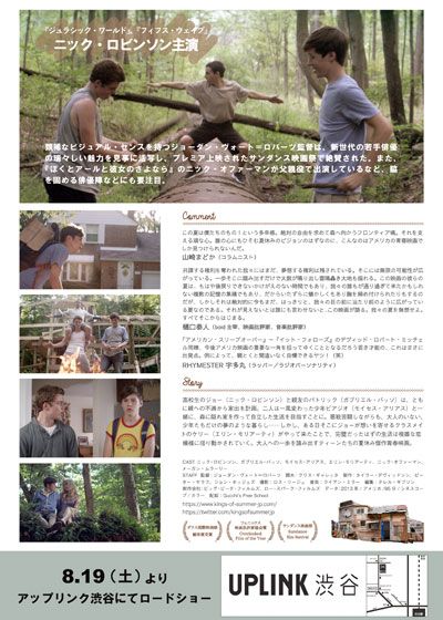キングス・オブ・サマー (2013):フォトギャラリー 2017年8月19日公開 95分 作品情報 映画短評 関連記事 予告編・動画 画像 チラシ縦スクロールで次の画像 ADVERTISEMENT ポスター 縦スクロールで次の画像 ADVERTISEMENT チラシ ADVERTISEMENT