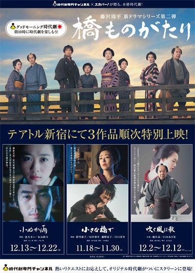 小さな橋で (2017):フォトギャラリー 2017年11月18日公開 95分 作品情報 予告編・動画 画像 ポスター - (C) 時代劇専門チャンネル/スカパー!/松竹 藤沢周平 (R)縦スクロールで次の画像 ADVERTISEMENT チラシ - (C) 時代劇専門チャンネル/スカパー!/松竹 藤沢周平 (R) 縦スクロールで次の画像 ADVERTISEMENT チラシ - (C) 時代劇専門チャンネル/スカパー!/松竹 藤沢周平 (R) ADVERTISEMENT