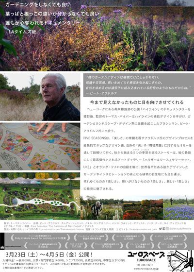 FIVE SEASONS ガーデン・オブ・ピート・アウドルフ (2017):フォトギャラリー 2019年3月23日公開 75分 作品情報 予告編・動画 画像 チラシ - (C) Five Seasons Media LLC, 2019縦スクロールで次の画像 ADVERTISEMENT ポスター - (C) Five Seasons Media LLC, 2019 縦スクロールで次の画像 ADVERTISEMENT チラシ - (C) Five Seasons Media LLC, 2019 ADVERTISEMENT
