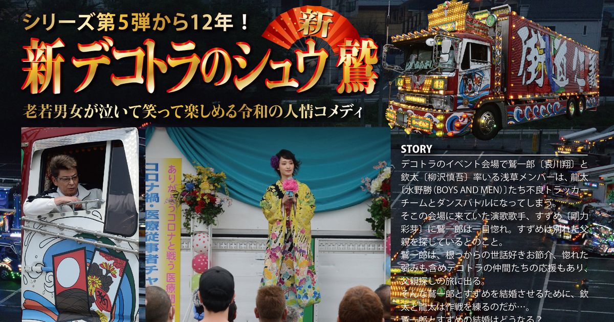 新 デコトラのシュウ 鷲 (2021):フォトギャラリー 2021年2月19日公開 107分 作品情報 予告編・動画 画像 チラシ - (C) 2021『新 デコトラのシュウ 鷲』製作委員会縦スクロールで次の画像 ADVERTISEMENT ポスター - (C) 2021『新 デコトラのシュウ 鷲』製作委員会 縦スクロールで次の画像 ADVERTISEMENT チラシ - (C) 2021『新 デコトラのシュウ 鷲』製作委員会 ADVERTISEMENT