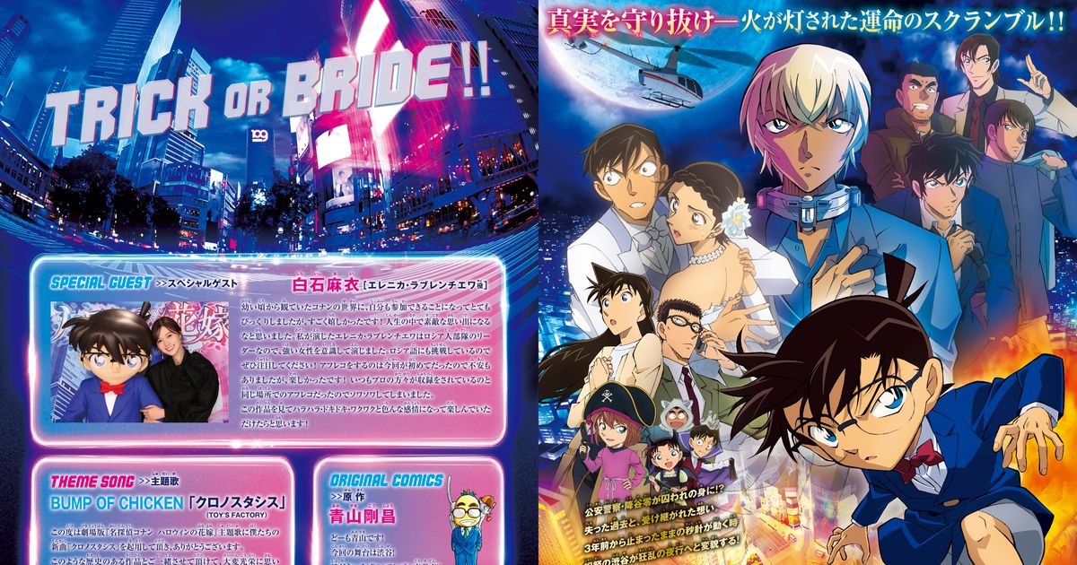 名探偵コナン ハロウィンの花嫁 (2022):フォトギャラリー 2022年4月15日公開 111分 作品情報 映画短評 関連記事 予告編・動画 画像 チラシ - (C) 2022 青山剛昌/名探偵コナン製作委員会縦スクロールで次の画像 ADVERTISEMENT ポスター - (C) 2022 青山剛昌/名探偵コナン製作委員会 縦スクロールで次の画像 ADVERTISEMENT チラシ - (C) 2022 青山剛昌/名探偵コナン製作委員会 ADVERTISEMENT