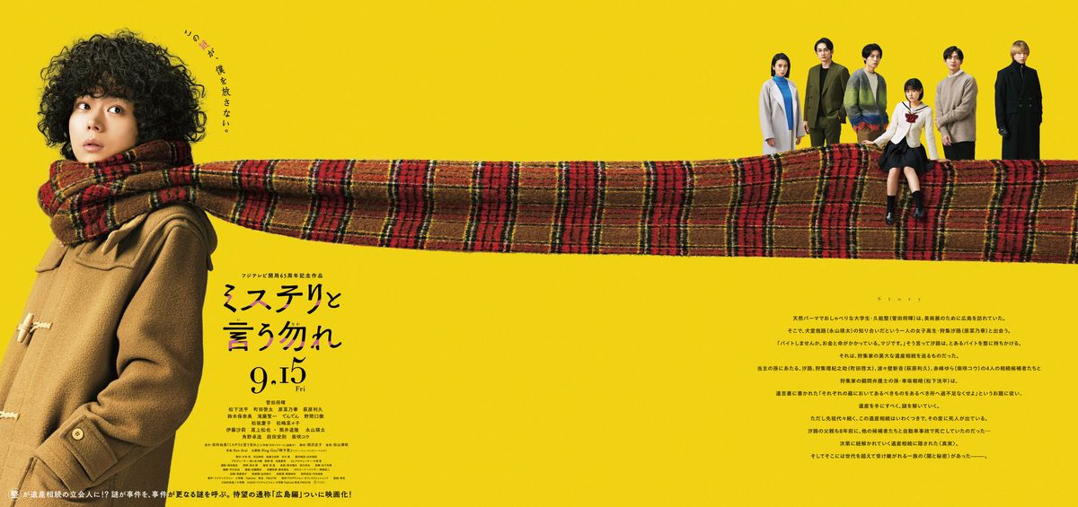 ミステリと言う勿れ (2023):フォトギャラリー 2023年9月15日公開 129分 作品情報 映画短評 関連記事 予告編・動画 画像 チラシ - (C) 田村由美/小学館 (C) 2023 フジテレビジョン 小学館 TopCoat 東宝 FNS27社縦スクロールで次の画像 ADVERTISEMENT ポスター - (C) 田村由美/小学館 (C) 2023 フジテレビジョン 小学館 TopCoat 東宝 FNS27社 縦スクロールで次の画像 ADVERTISEMENT チラシ - (C) 田村由美/小学館 (C) 2023 フジテレビジョン 小学館 TopCoat 東宝 FNS27社 ADVERTISEMENT