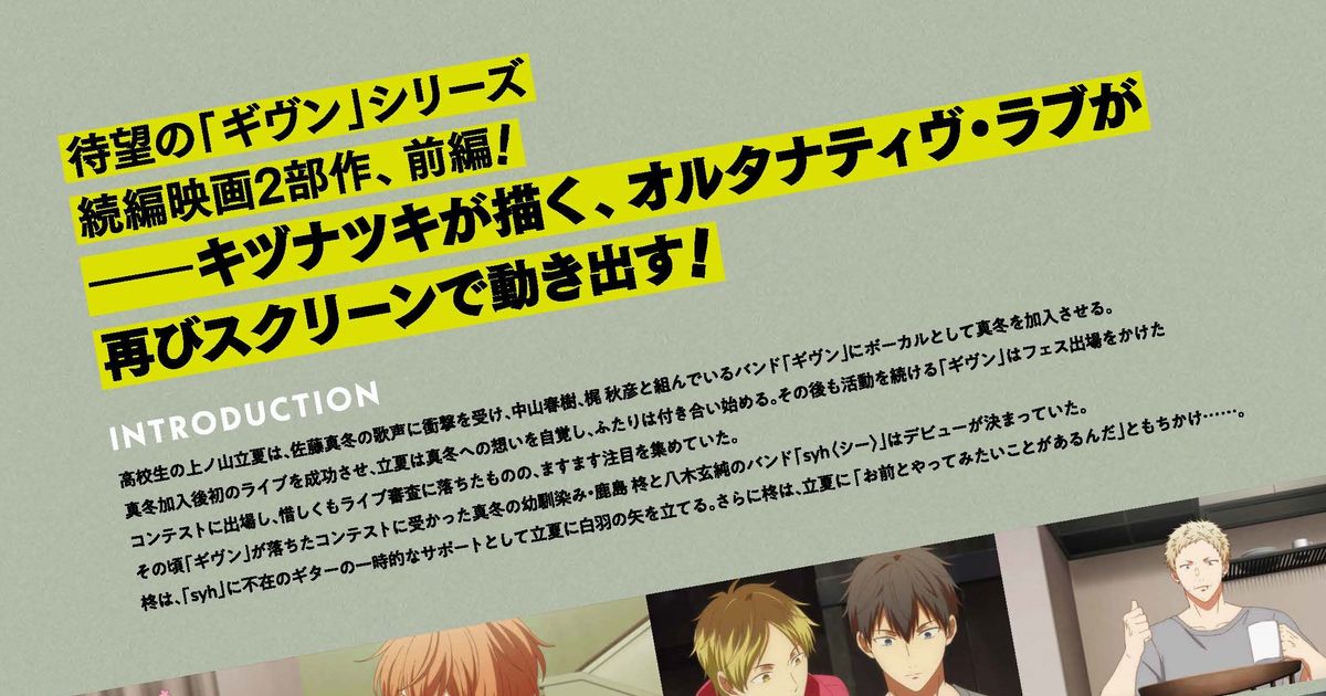 映画 ギヴン 柊 mix (2024):フォトギャラリー 2024年1月27日公開 70分 作品情報 関連記事 予告編・動画 画像 チラシ - (C) キヅナツキ・新書館/ギヴン製作委員会縦スクロールで次の画像 ADVERTISEMENT ポスター - (C) キヅナツキ・新書館/ギヴン製作委員会 縦スクロールで次の画像 ADVERTISEMENT チラシ - (C) キヅナツキ・新書館/ギヴン製作委員会 ADVERTISEMENT