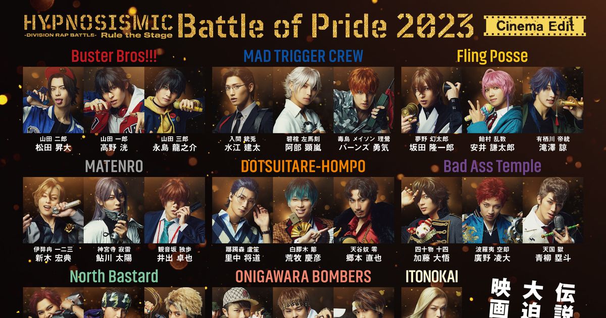 『ヒプノシスマイク -Division Rap Battle-』Rule the Stage -Battle of Pride 2023-【Cinema Edit】 (2024):フォトギャラリー 2024年2月16日公開 作品情報 予告編・動画 画像 チラシ - (C) 『ヒプノシスマイク -Division Rap Battle-』Rule the Stage製作委員会縦スクロールで次の画像 ADVERTISEMENT ポスター - (C) 『ヒプノシスマイク -Division Rap Battle-』Rule the Stage製作委員会 縦スクロールで次の画像 ADVERTISEMENT チラシ - (C) 『ヒプノシスマイク -Division Rap Battle-』Rule the Stage製作委員会 ADVERTISEMENT