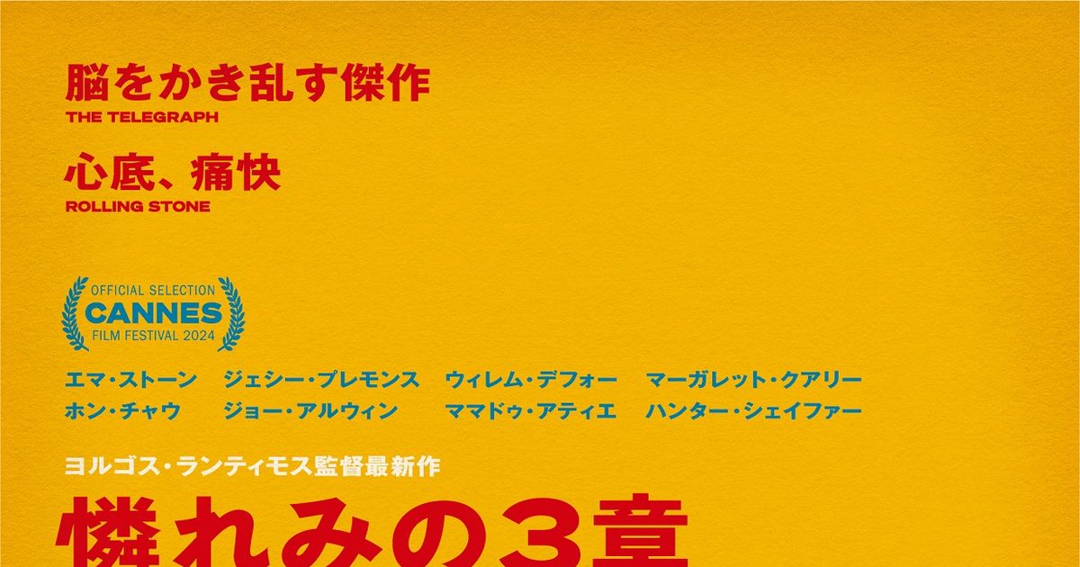 憐れみの3章 (2024):フォトギャラリー 2024年9月27日公開 164分 作品情報 映画短評 関連記事 予告編・動画 画像 ポスター - (C) 2024 20th Century Studios. All Rights Reserved.縦スクロールで次の画像 ADVERTISEMENT