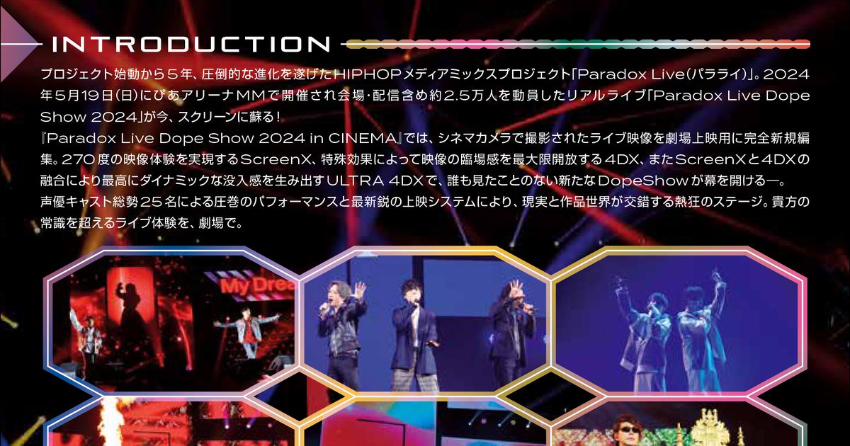 Paradox Live Dope Show 2024 in CINEMA (2024):フォトギャラリー 2024年11月29日公開 94分 作品情報 予告編・動画 画像 チラシ - (C) Paradox Live2024縦スクロールで次の画像 ADVERTISEMENT ポスター - (C) Paradox Live2024 縦スクロールで次の画像 ADVERTISEMENT チラシ - (C) Paradox Live2024 ADVERTISEMENT