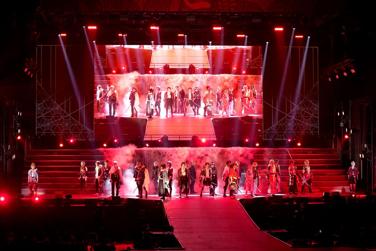歴史に名を刻む刀剣が戦士となり歴史改変をもくろむ敵との戦いを繰り広げるゲームを原作とした舞台シリーズ「ミュージカル『刀剣乱舞』」。2024年に上演された「乱舞音曲祭」形式の公演「ミュージカル『刀剣乱舞』祝玖寿 乱舞音曲祭」では、2015年にスタートした舞台シリーズの9年に及ぶ軌跡を振り返りながら刀剣男士たちがステージで歌やダンス、芝居を披露する。