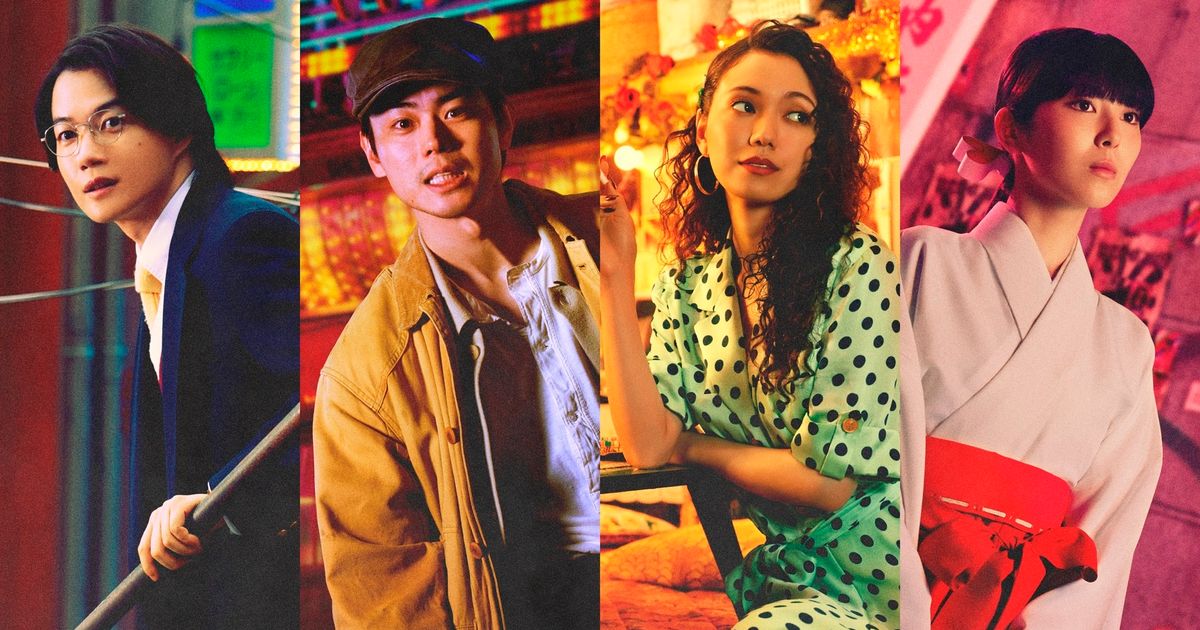 解禁されたのは、菅田演じる劇団の演出家・久部三成、二階堂演じるダンサーの倖田リカ、神木演じる放送作家の蓬莱省吾、そして浜辺演じる巫女の江頭樹里のキャラクタービジュアルだ。強い眼差しで、ネオン輝く劇場をバックに立つ“熱量の塊”のような久部。たばこを片手に楽屋で一服しているリカ。ジャケットにネクタイ姿で、新人の初々しさがにじみ出る蓬莱。神聖な巫女装束と渋谷の落書きのコントラストが印象的な樹里。それぞれの日常を切り取ったビジュアルとなっている。