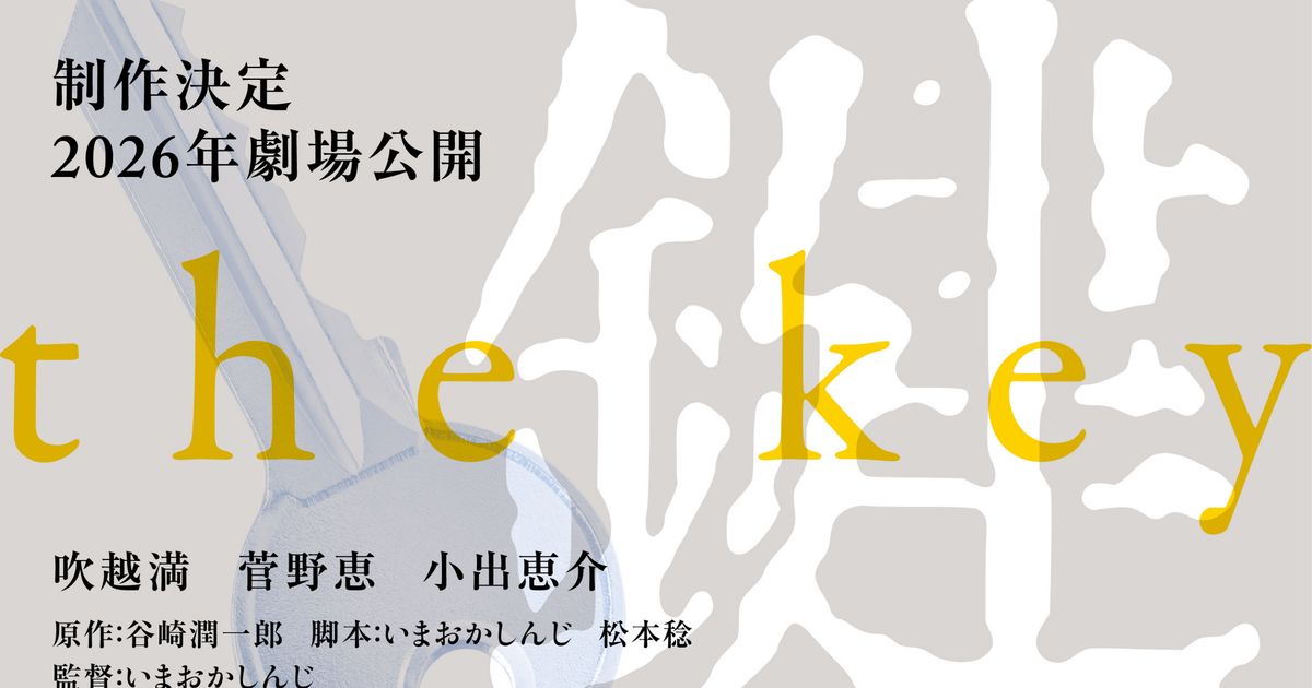 谷崎潤一郎の小説「鍵」が、いまおかしんじ監督、吹越満・菅野恵・小出恵介共演で新たにオリジナルストーリーとして映画化される。公開は2026年の予定。
