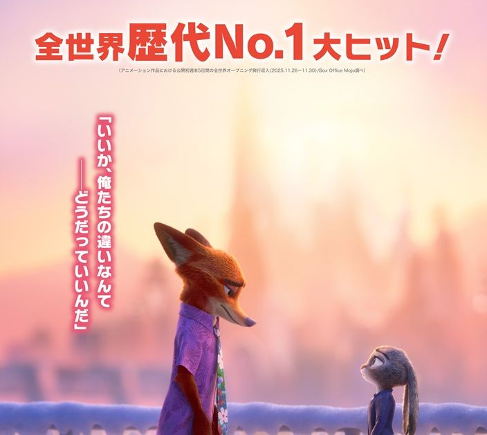 公開6週目を迎えた『ズートピア2』は、週末3日間で動員46万3,000人、興収6億5,400万円を記録。1月12日までの累計成績は動員907万人、興収123億円を突破しており、依然として圧倒的な強さを見せている。