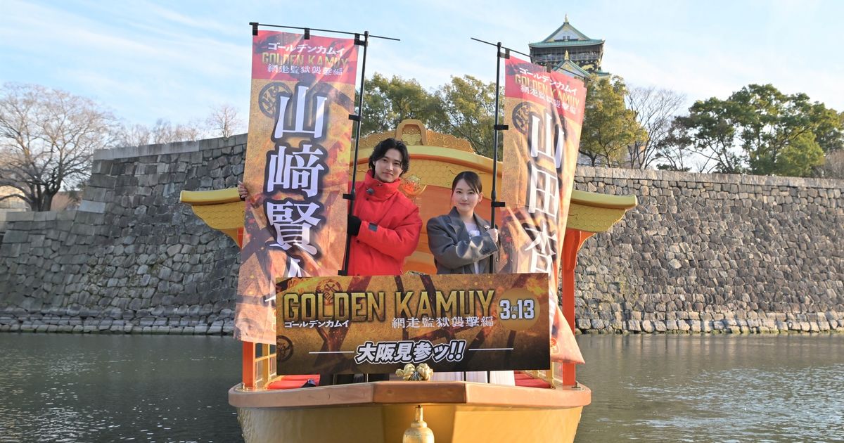 『ゴールデンカムイ』山崎賢人&山田杏奈、“ゴールデン”色の船で大阪城参上 相棒への“サンキュー”に大照れ