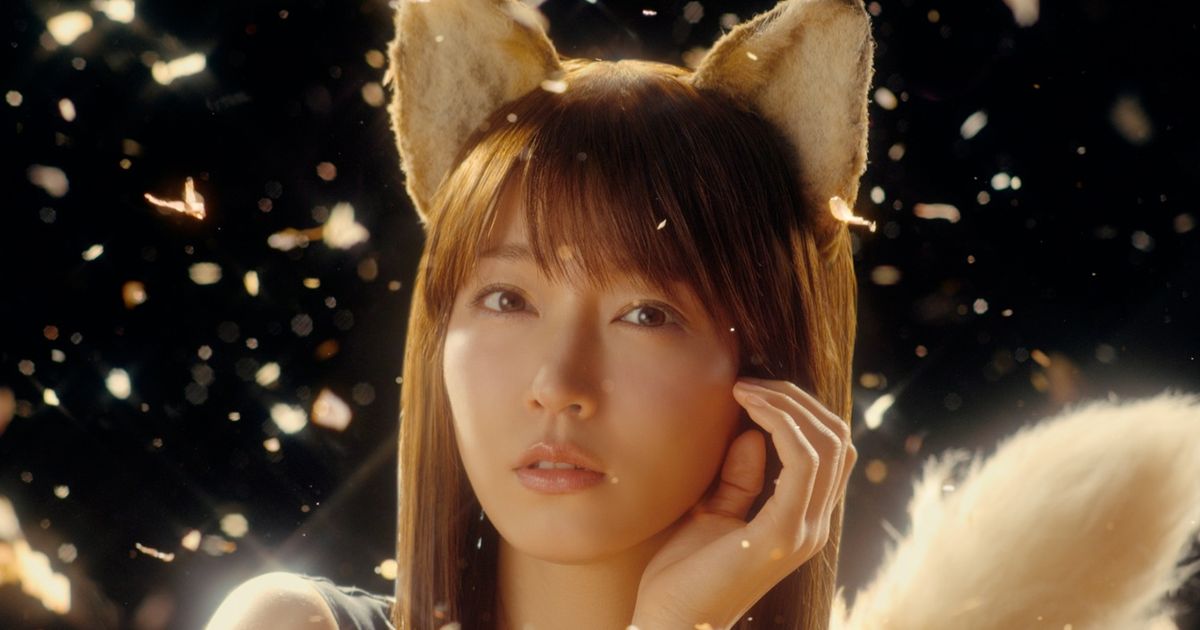 キュートな狐耳としっぽの吉岡版“どんぎつね”が帰ってくる。4年前の「さよなら、どんぎつね篇」で見せた、白を基調とした愛らしいファッションから一転。今回は黒いドレスを身にまとい、「どん兵衛」の“おだし”に欠かせない素材・鰹節に溺れながら、大人の魅力あふれる表情を披露する。