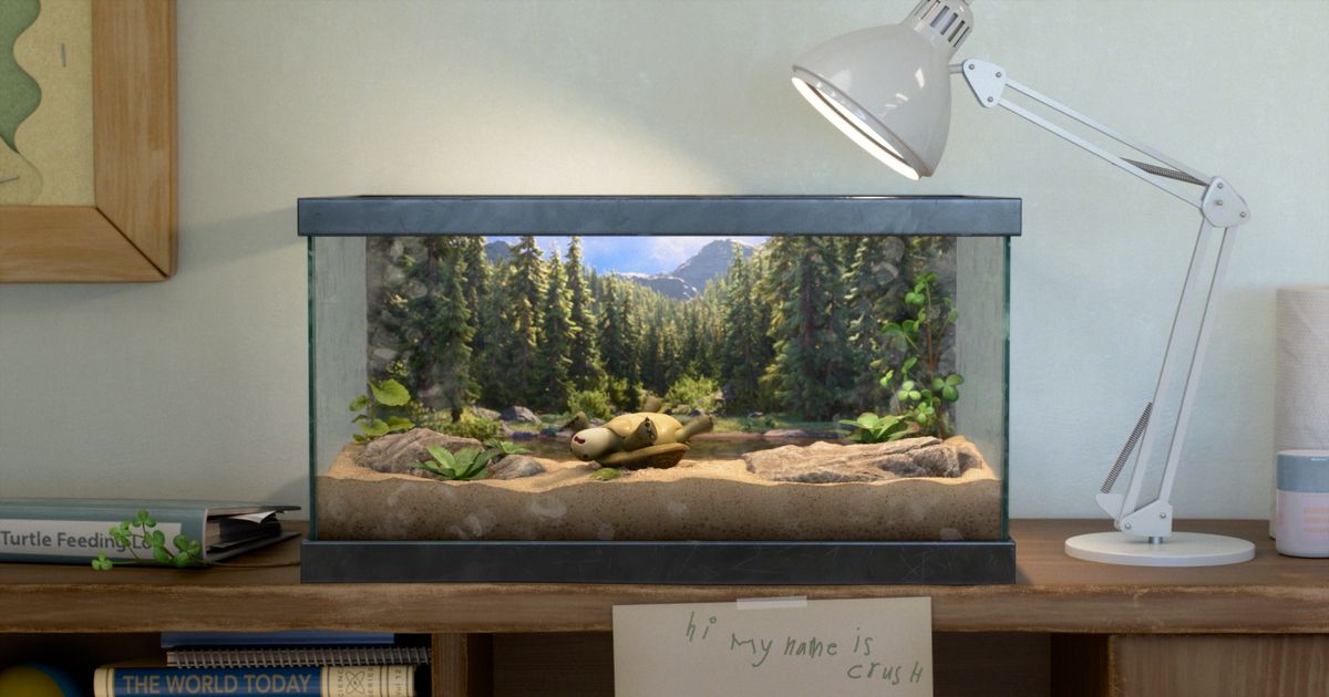 一つ目は、小学生の頃のメイベルが動物たちを教室の飼育ケースから救出するシーンに出てくるカメの名前が「クラッシュ」であることで、これはもちろん『ファインディング・ニモ』の人気キャラ、ウミガメのクラッシュと同じ名前。このシーンでは、ピクサー映画のオープニングでおなじみのピクサーランプ(ルクソーJr.)がクラッシュの水槽を照らしているので併せてチェックしたい。