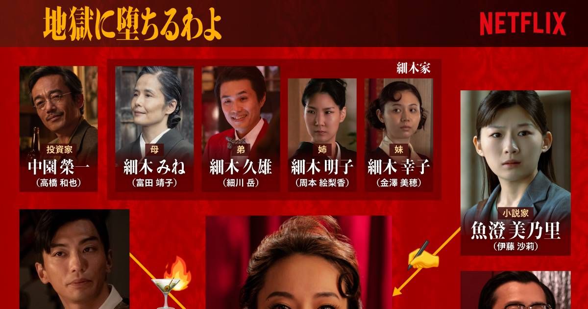 本日配信!Netflixシリーズ「地獄に堕ちるわよ」相関図公開